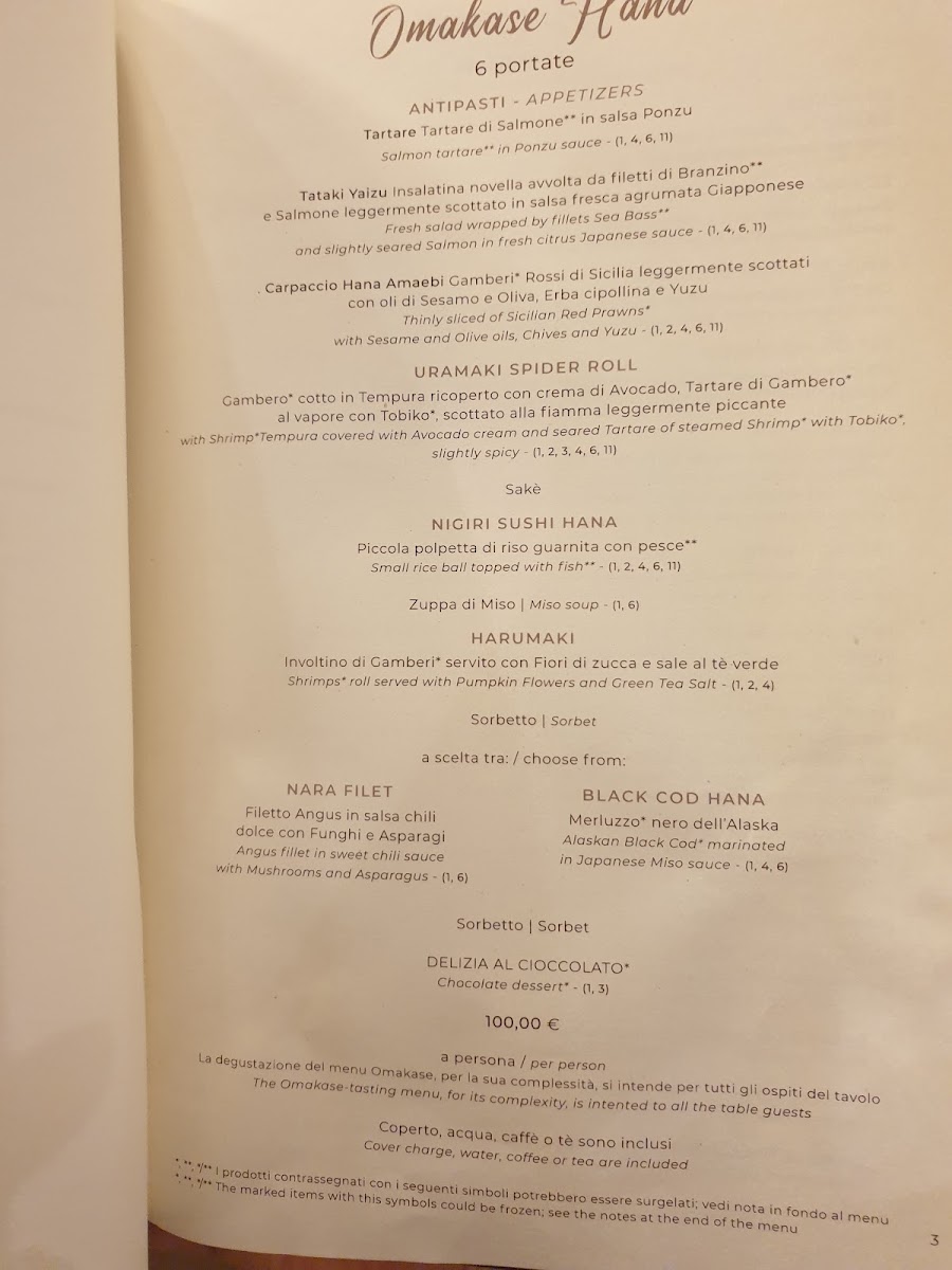 The menu also shines beyond raw dishes, starting with flavorful antipasti like Edamame Spicy, Tartare Tonno In Salsa Ponzu, Tartare Salmone In Salsa Ponzu, and Tartare Mista Piccante In Salsa Ponzu, which set a vibrant tone. Warm dishes such as Misoshiru, Yaki Soba, Yaki Udon, Yasai Udon, and Riso Saltato Ai Gamberi provide comforting alternatives, while lighter options like Wakame Salad and Verdura Saltata Con Soia add balance. The lunch-exclusive Hana Bento Sushi is a convenient and complete choice for midday dining. Specialties including Amiyaki Salmon, Tempura Mista Gamberi E Verdure, Salmon Teriyaki, Kadaifi 4 Pezzi, and Harumaki highlight the kitchen’s versatility, complemented by hand rolls such as Temaki Salmone E Avocado, Temaki Salmone Al Vapore E Philadelphia, Temaki Salmone Piccante, Temaki Tonno, and Temaki Ebiten. To finish, desserts like Cheescake, Mousse Ai 3 Cioccolati, and Tortino Cioccolato Fondente E Lampone, paired with wines such as Chardonnay - Jurosa - Lis Neris, Pinot Grigio - Gris - Lis Neris, or beers like Sapporo 33 Cl, Kirin 33 Cl, and Asahi Super Dry Birra 33 Cl, round out a menu that feels complete, thoughtful, and consistently appealing.